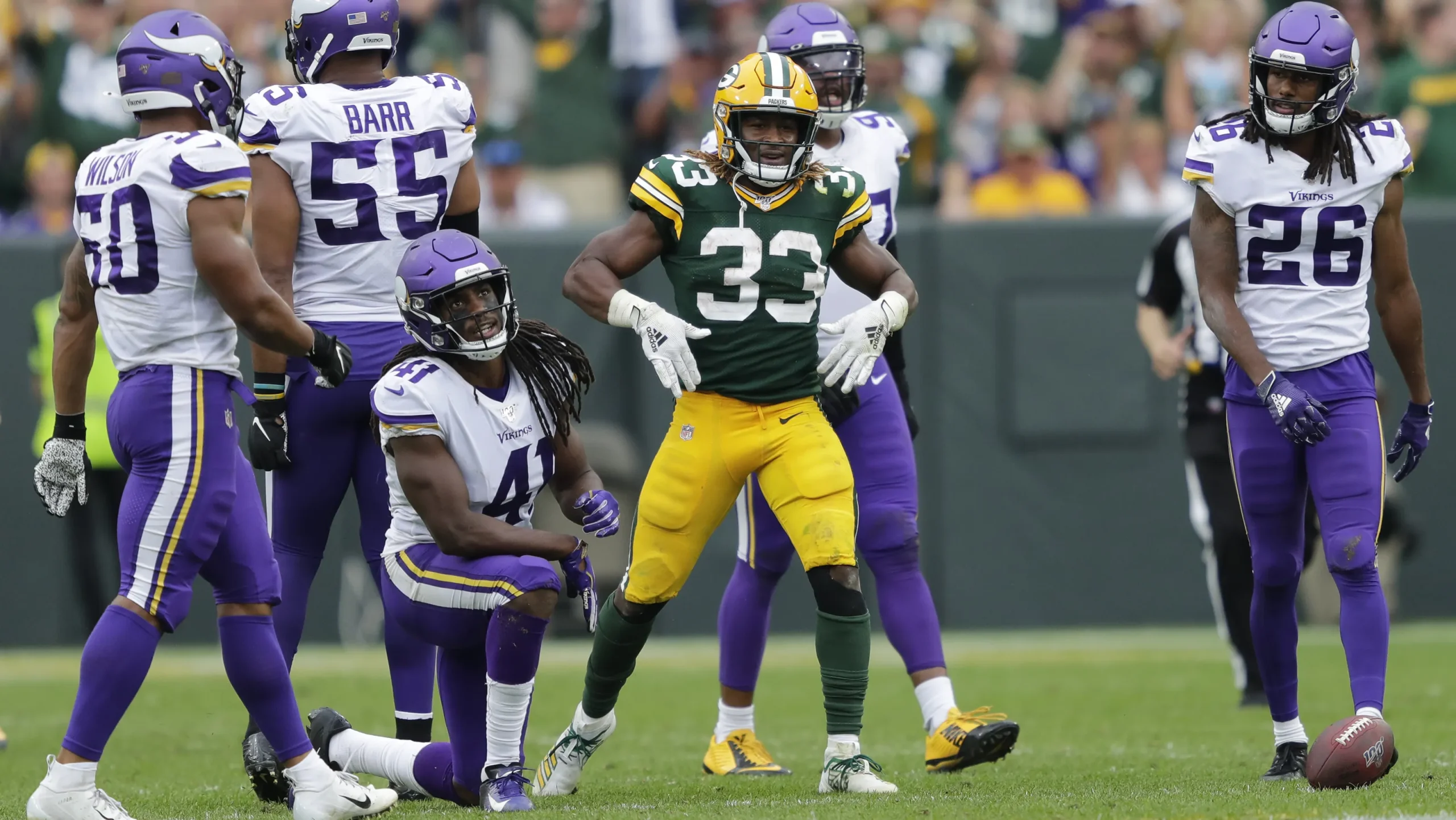 🔴 Aaron Jones (RB) – Now with Vikings after leaving in free agency, creating emotional toll
